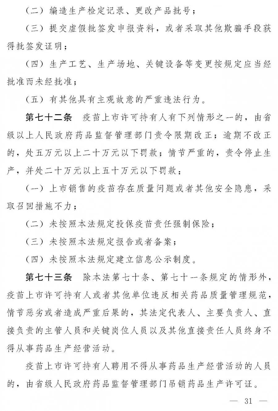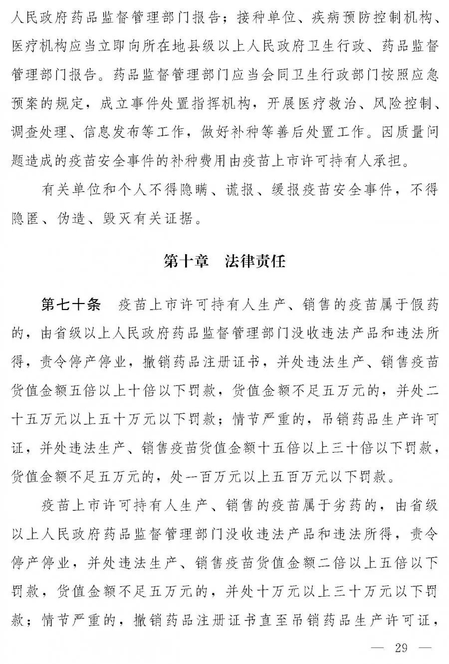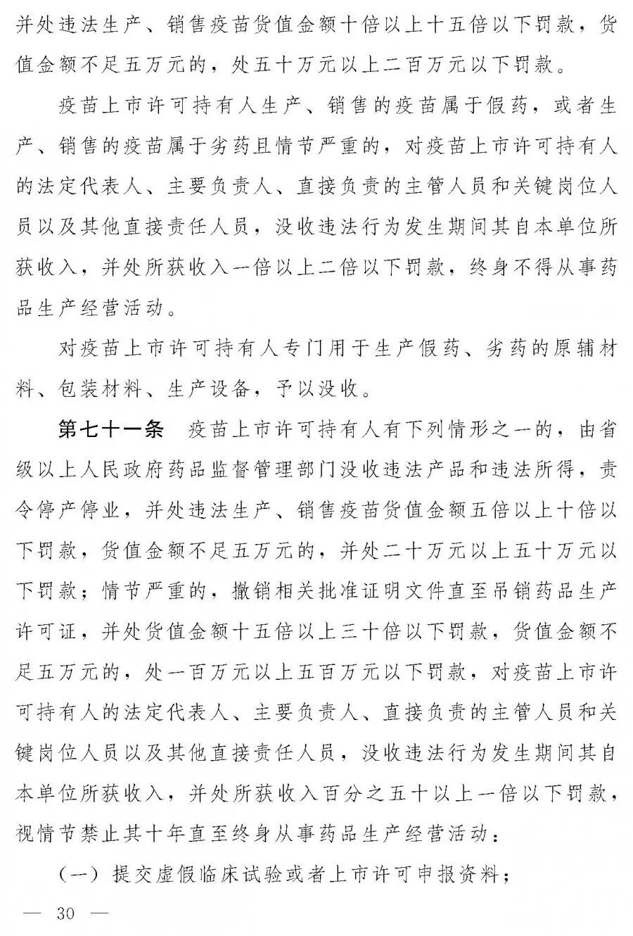 制售假疫苗最高处货值金额30倍罚款