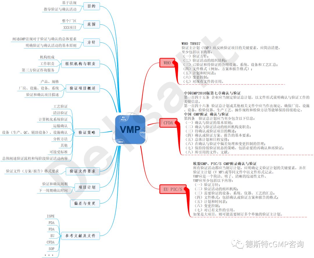 VMP作为质量体系一部分,用于指导新建生产车间/部门进行验证的纲领性文件,根据风险评估的输出确定具体确认/验证活动,作为项目组的指导,确立验证目标,确定项目职责,概述预期的确认/验证活动,并结合项目需求和资源供给给出整体的时间框架。